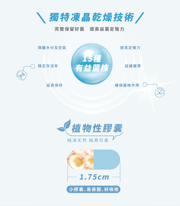 - 每粒素食膠囊包含:320 億個 CFU