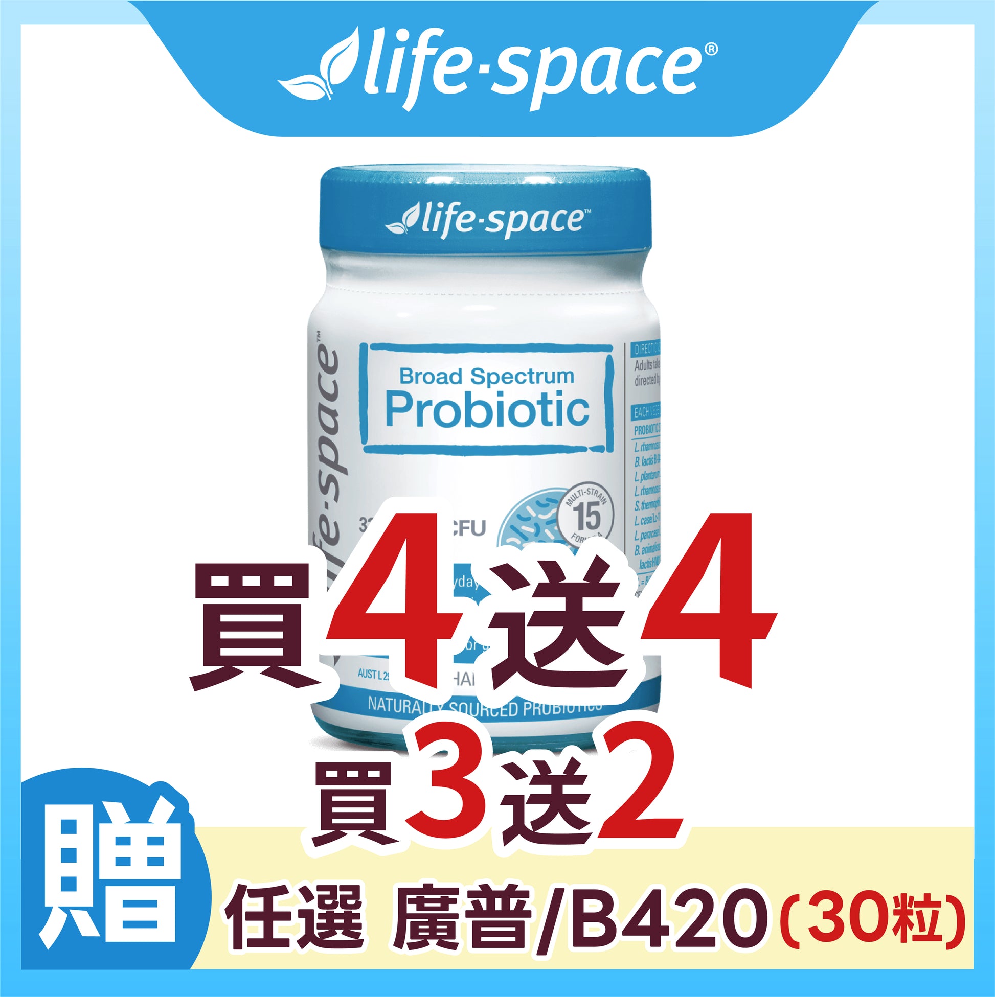Life-Space 廣普益生菌優質配方,含有15種有益菌種